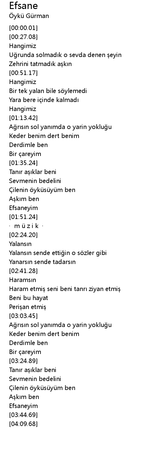 | [01:00.61] | Bir tek yalan bile s ylemedi |