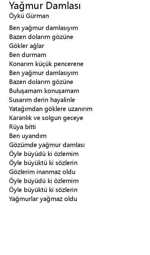 | Ben yağmur damlasıyım | |