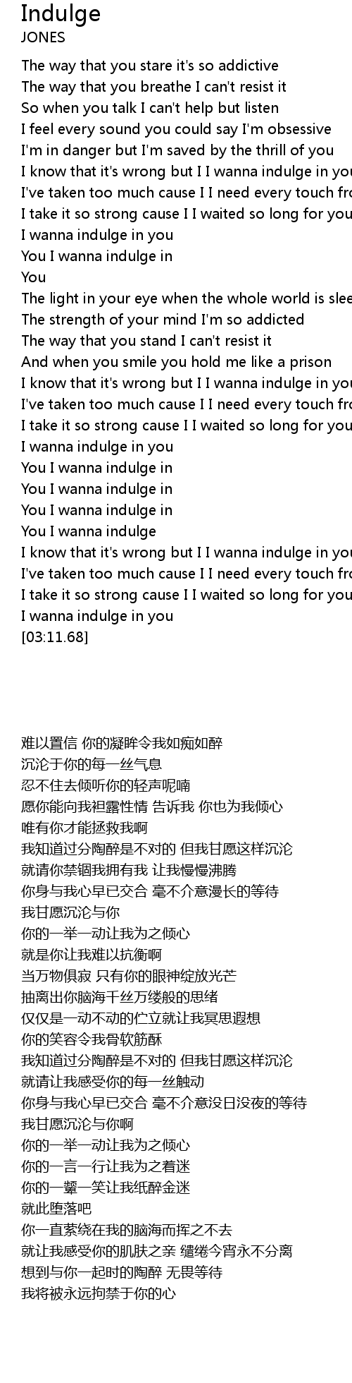 | [00:42.15] | I know that it's wrong but I I wanna indulge in you |