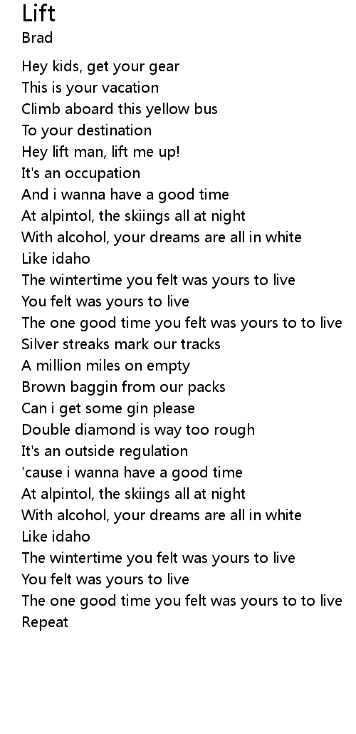 | Hey lift man, lift me up! | |