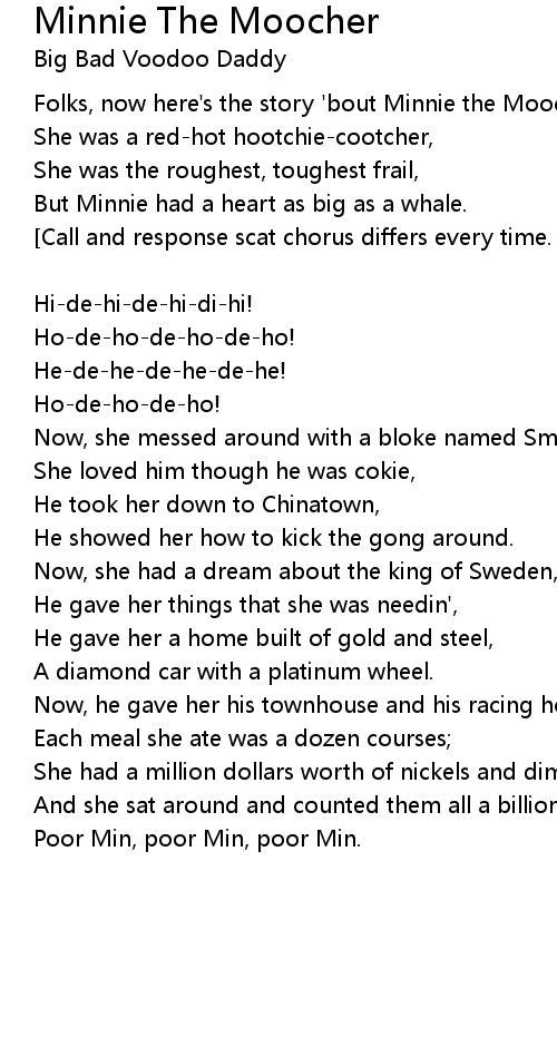 Folks, now here's the story 'bout Minnie the Moocher, |