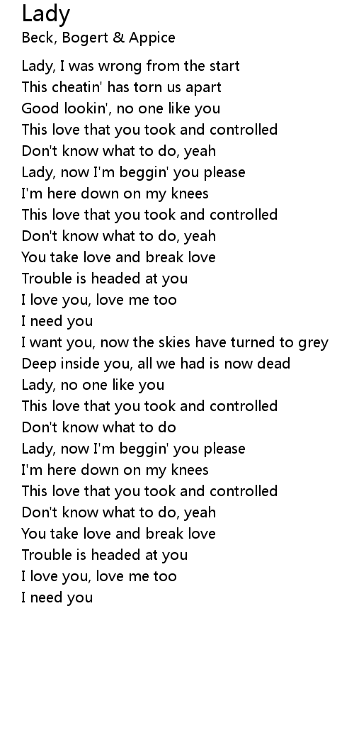 Lady, now I'm beggin' you please |