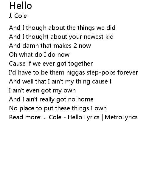 | Read more: J. Cole - Hello Lyrics | MetroLyrics |