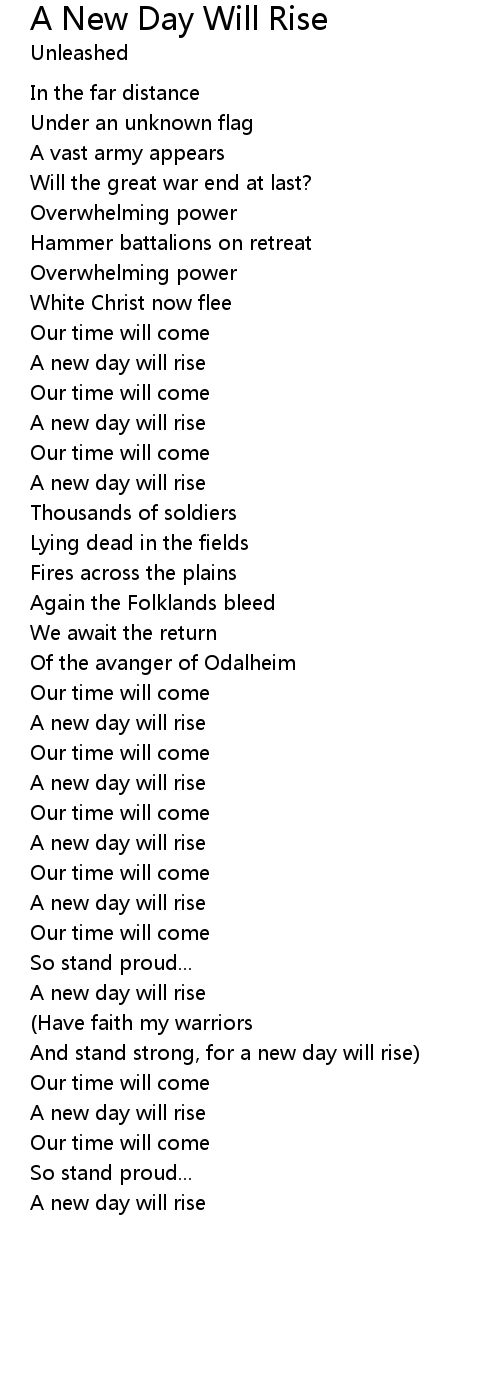 A new day will rise |
