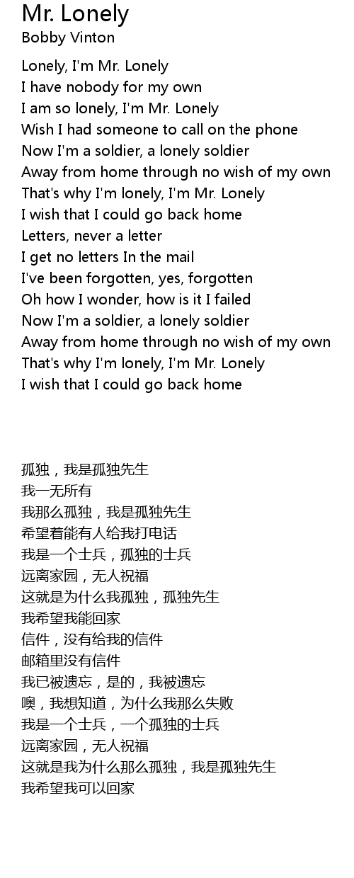 That's why I'm lonely, I'm Mr. Lonely |