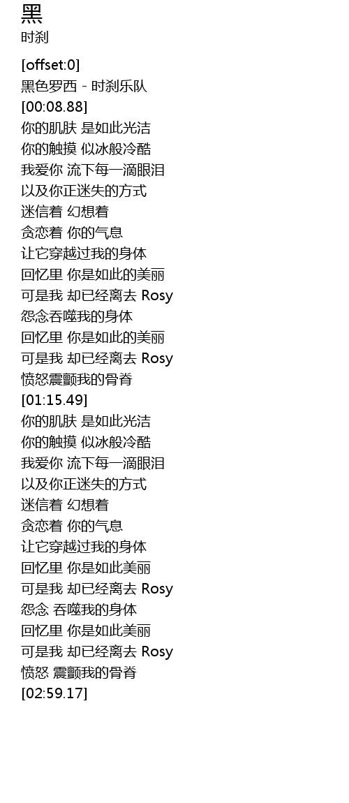| [00:02.63] | 黑色罗西 - 时刹乐队 |
