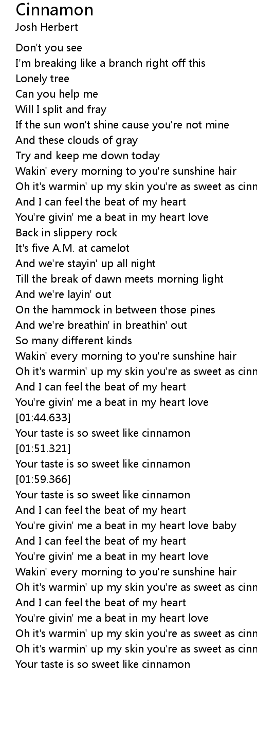 Oh it's warmin' up my skin you're as sweet as cinnamon |