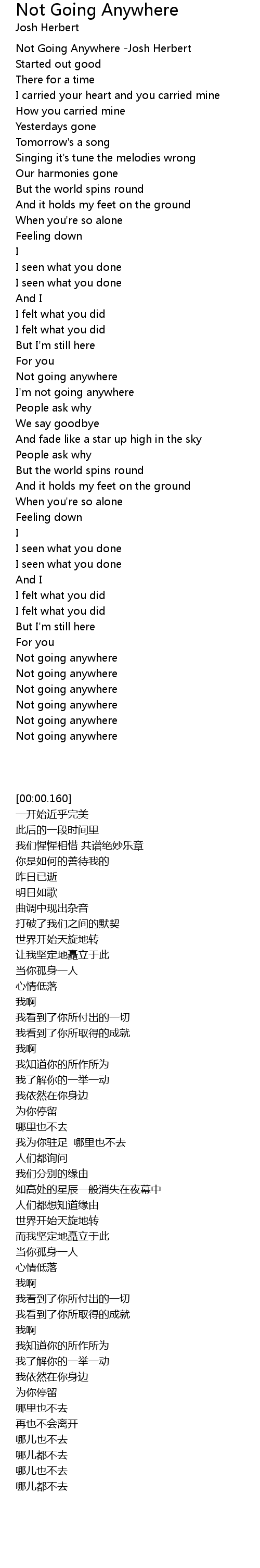 [00:00.160] Not Going Anywhere -Josh Herbert