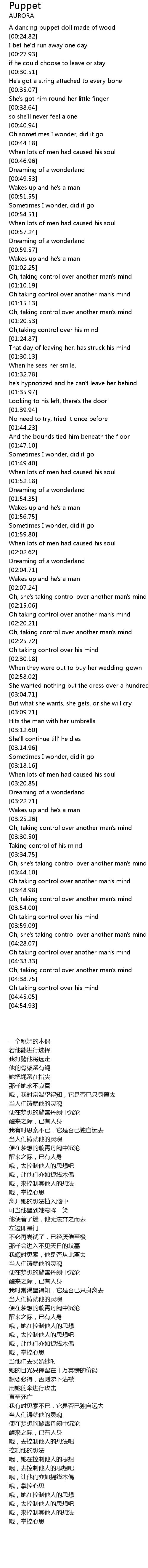 | [00:20.72] | A dancing puppet doll made of wood |