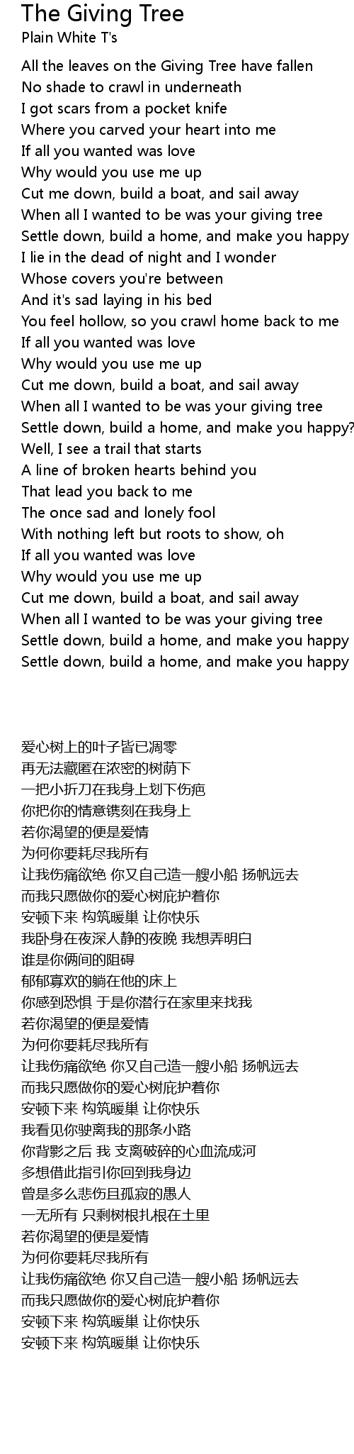 When all I wanted to be was your giving tree |