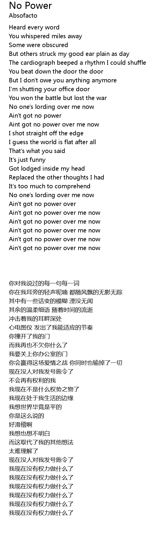 Ain't got no power over |