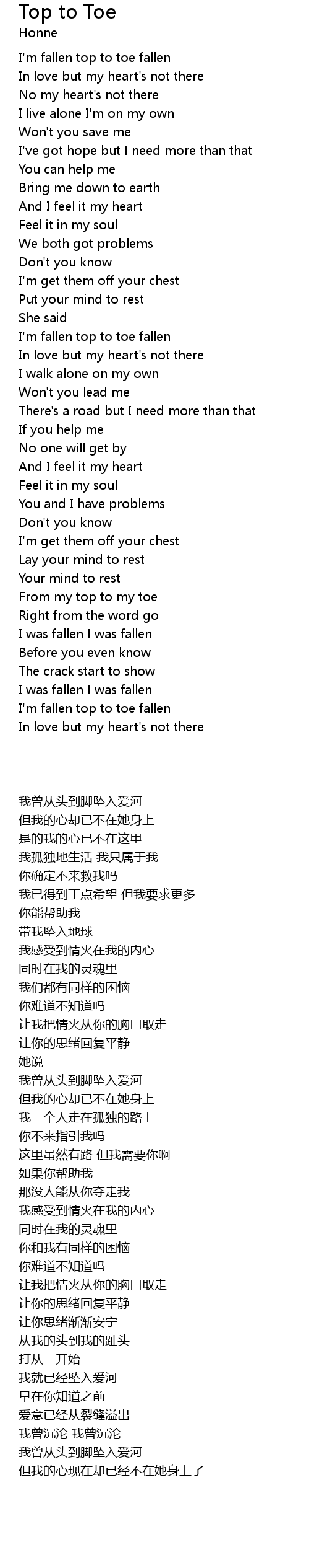 I'm fallen top to toe fallen |