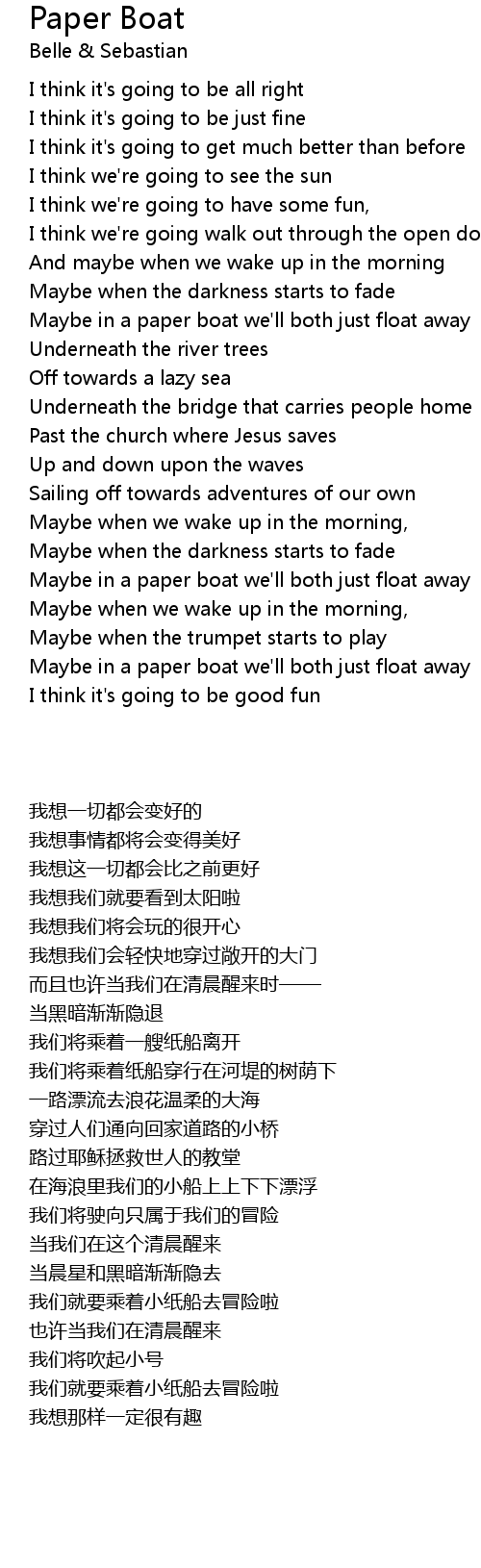 Maybe in a paper boat we'll both just float away |