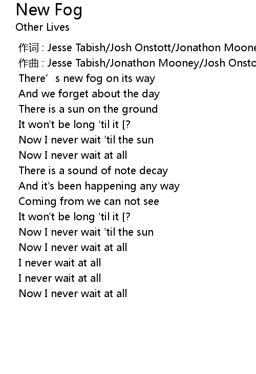 | [00:01.000] | 作曲 : Jesse Tabish/Jonathon Mooney/Josh Onstott |