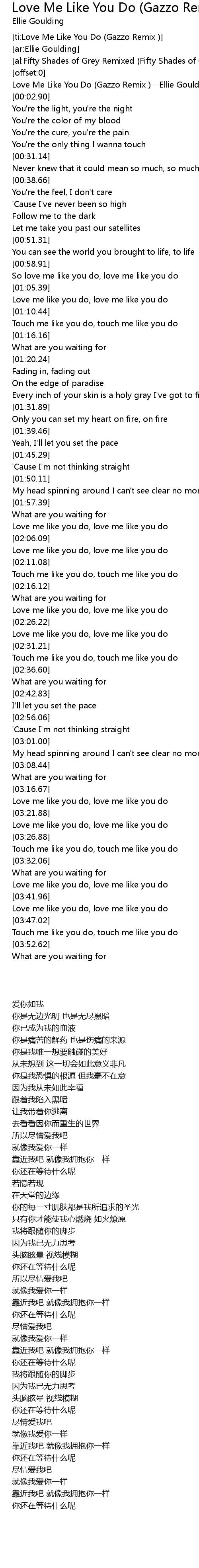 [ti:Love Me Like You Do (Gazzo Remix )] |