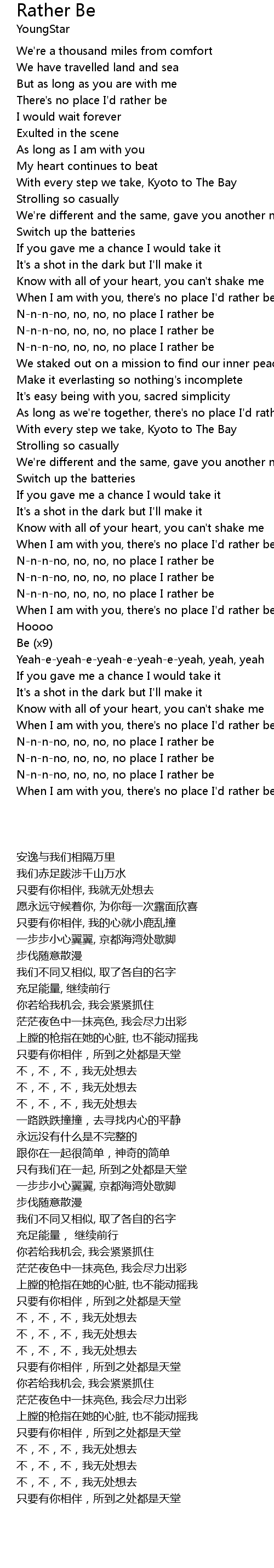 N-n-n-no, no, no, no place I rather be |