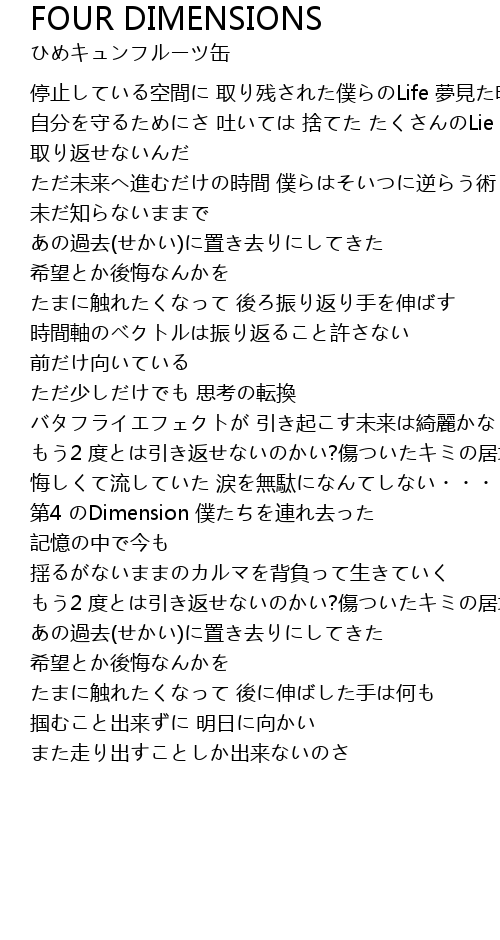| ただ未来へ進むだけの時間 僕らはそいつに逆らう術 未だ知らないままで | |