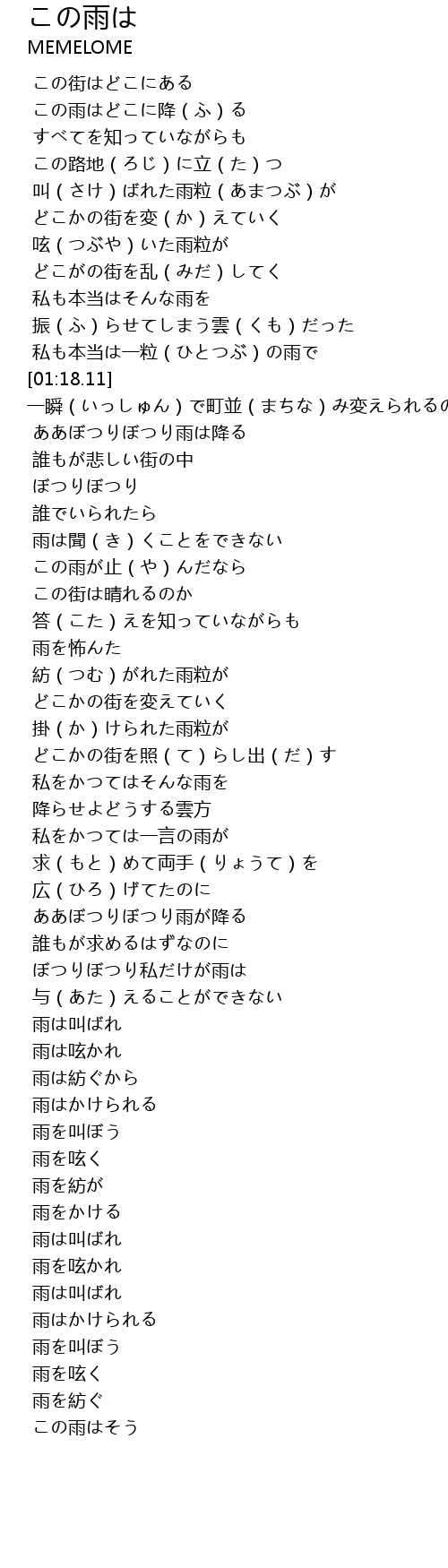 | [01:40.39] | 雨は聞(き)くことをできない |