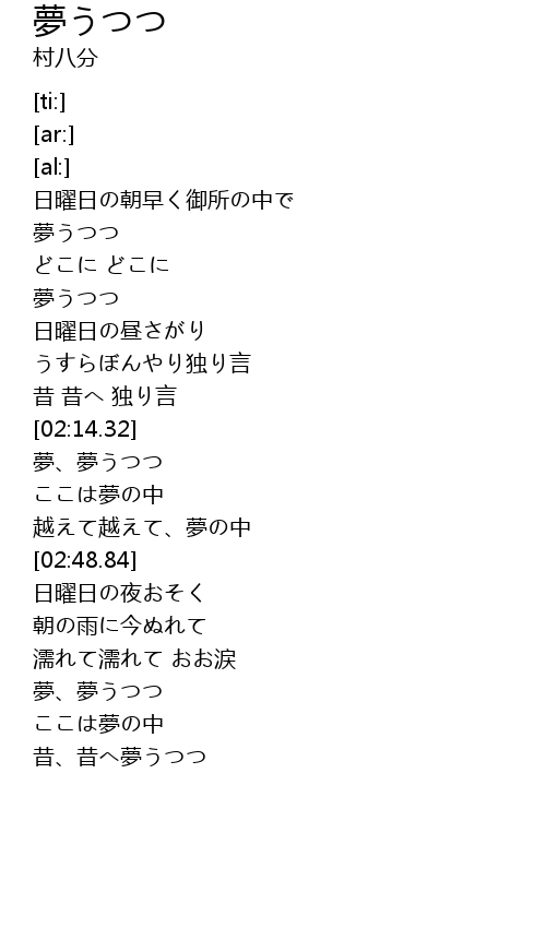 | [02:28.09] | 夢、夢うつつ |