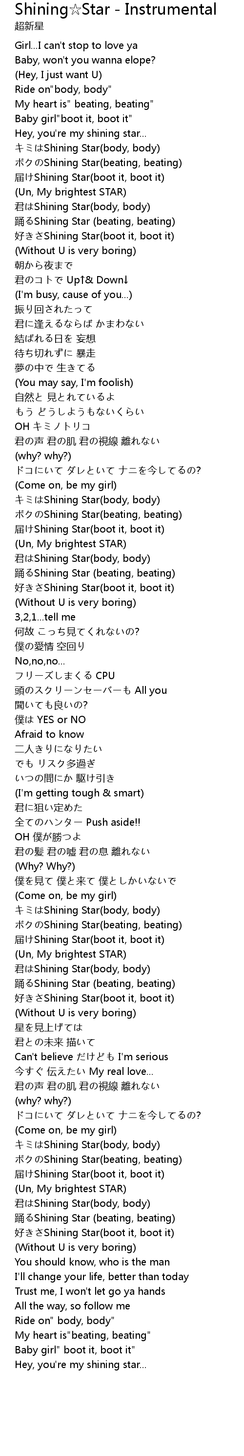 | Shining Star beating, beating | |