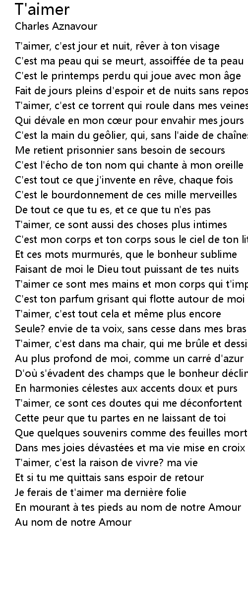 | T' aimer ce sont mes mains et mon corps qui t' implorent | |