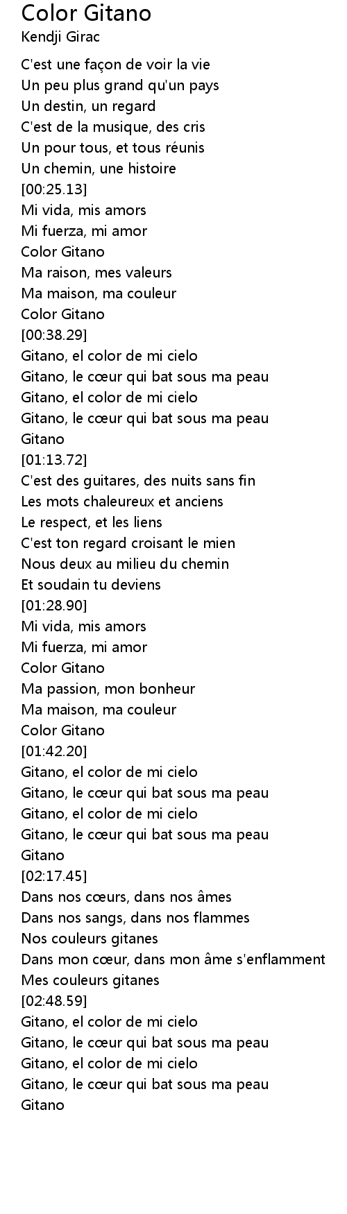 | [02:57.32] | Gitano, le cœur qui bat sous ma peau |