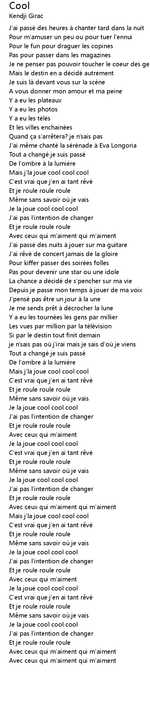 | Mais j'la joue cool cool cool | |
