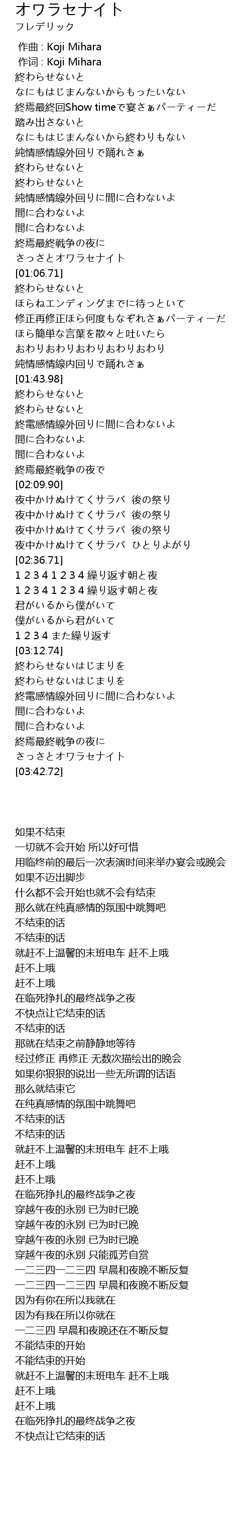 | [00:22.16] | 終焉最終回Show timeで宴さぁパーティーだ |
