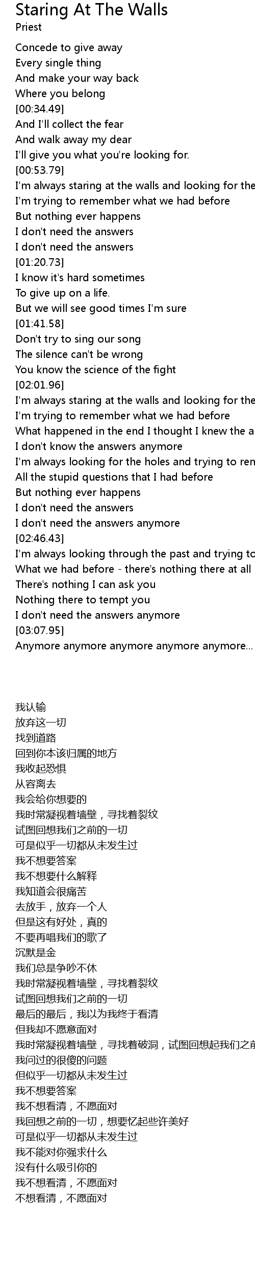 | [02:06.40] | I'm always staring at the walls and looking for the cracks |