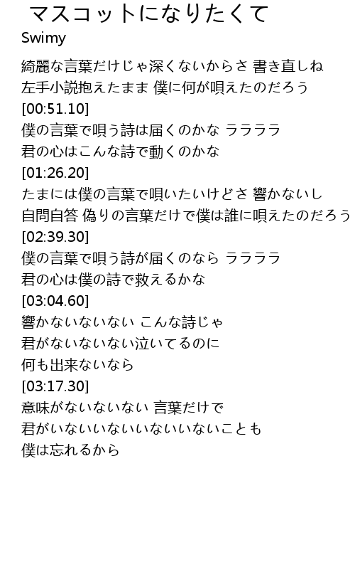 | [03:17.34] | 意味がないないない 言葉だけで |