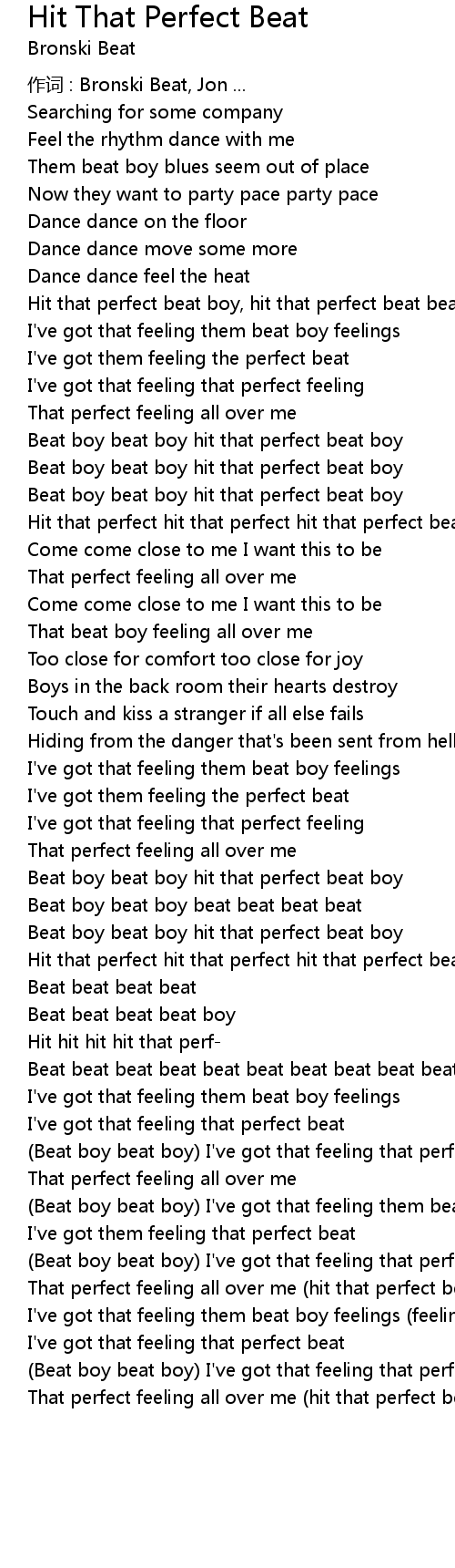| Hit that perfect hit that perfect hit that perfect beat boy | |
