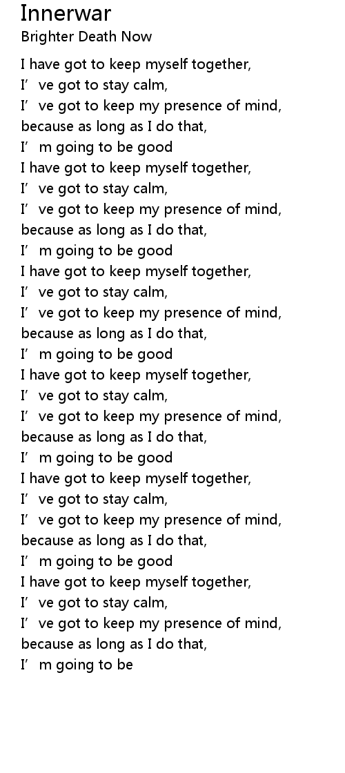 | [00:41.91] | I' ve got to keep my presence of mind, |