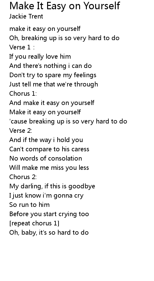 | 'cause breaking up is so very hard to do | |