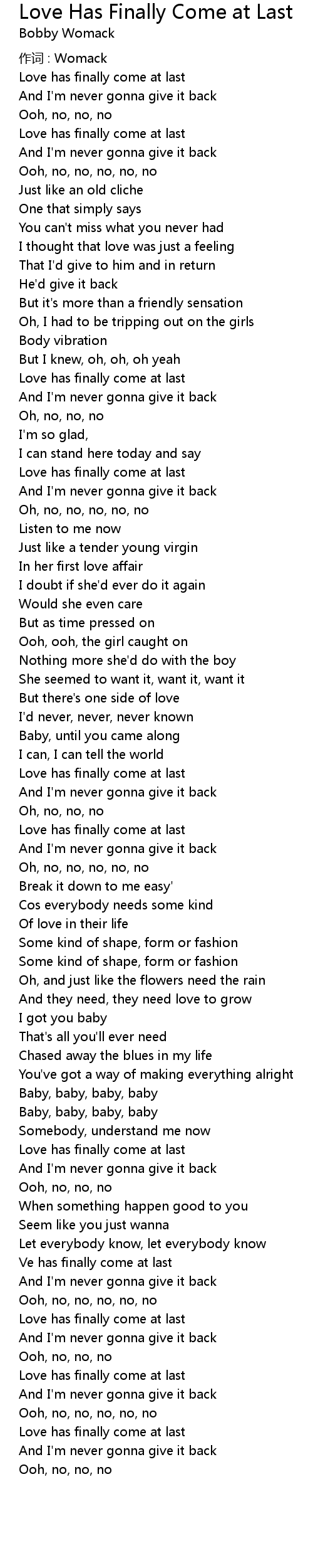 | Love has finally come at last | |