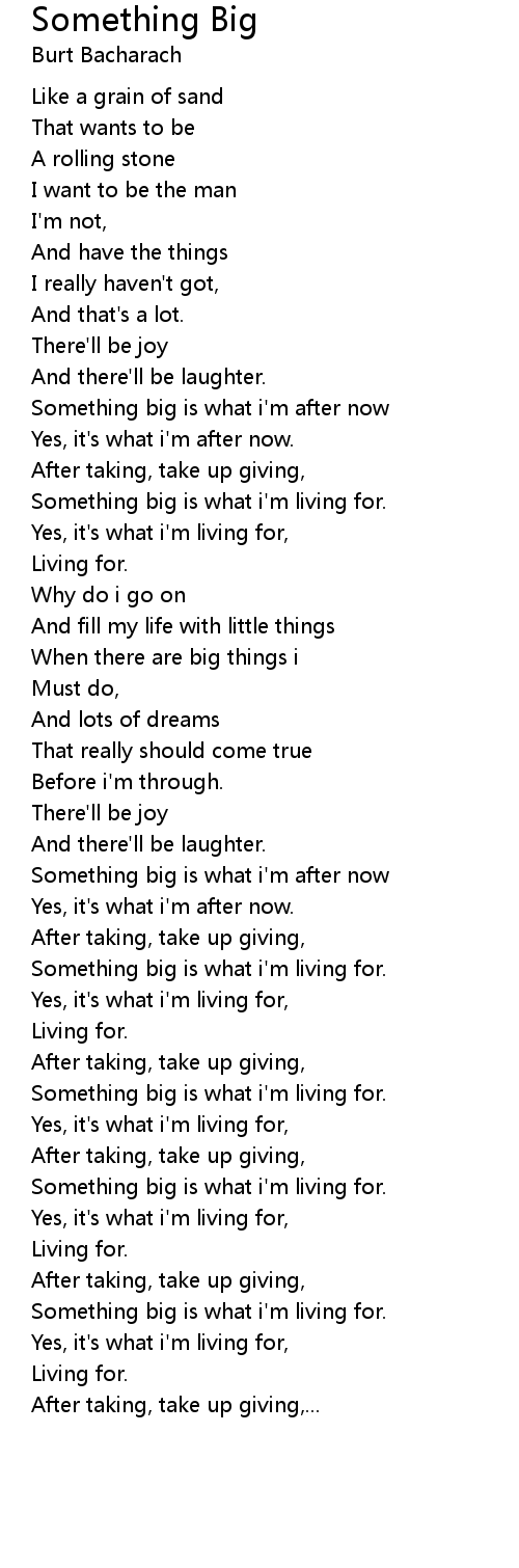 Something big is what i'm after now |