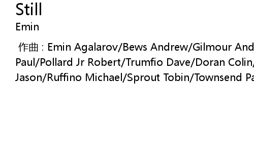 | [00:00.000] | 作曲 : Emin Agalarov/Bews Andrew/Gilmour Andrew/Mertens Paul/Pollard Jr Robert/Trumfio Dave/Doran Colin/Hibbitt Laurence/Hinkle Jason/Ruffino Michael/Sprout Tobin/Townsend Paul/Widner Thomas |