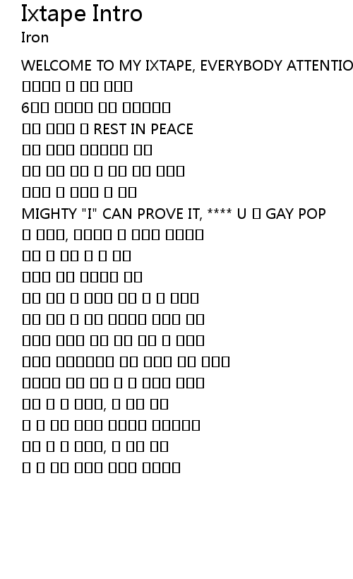 | [00:09.35] | WELCOME TO MY IXTAPE, EVERYBODY ATTENTION PLEASE |