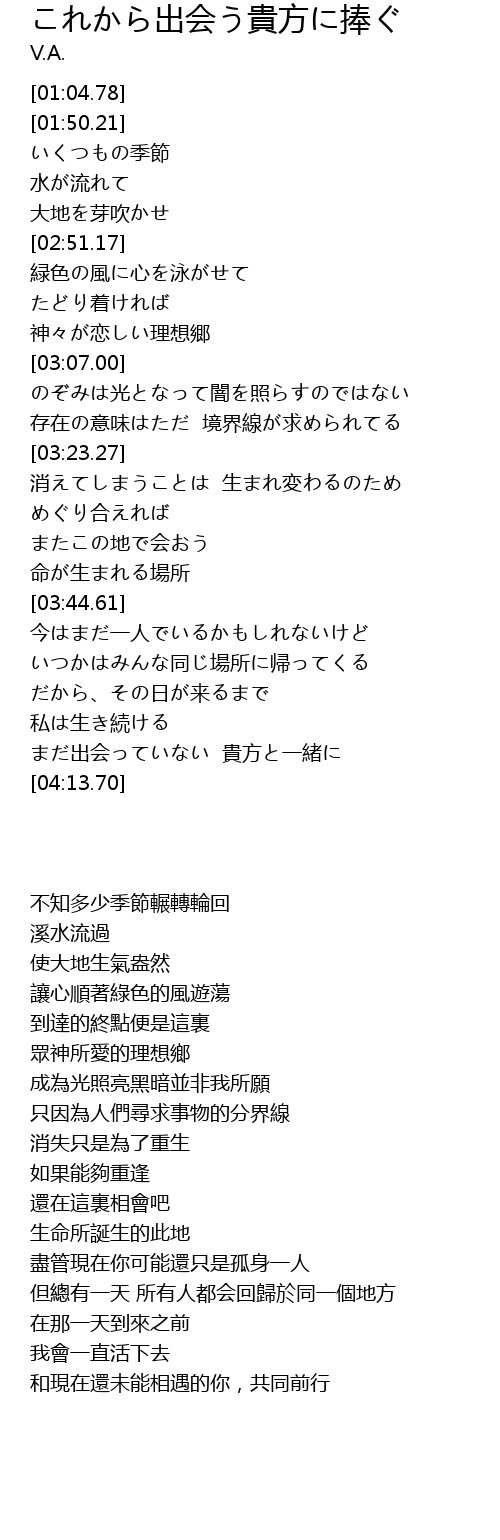 | [04:10.42] | まだ出会っていない 貴方と一緒に |