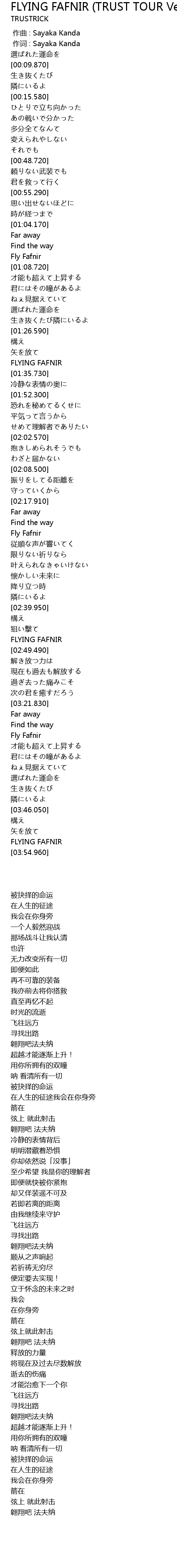 | [00:01.00] | 作词 : Sayaka Kanda |