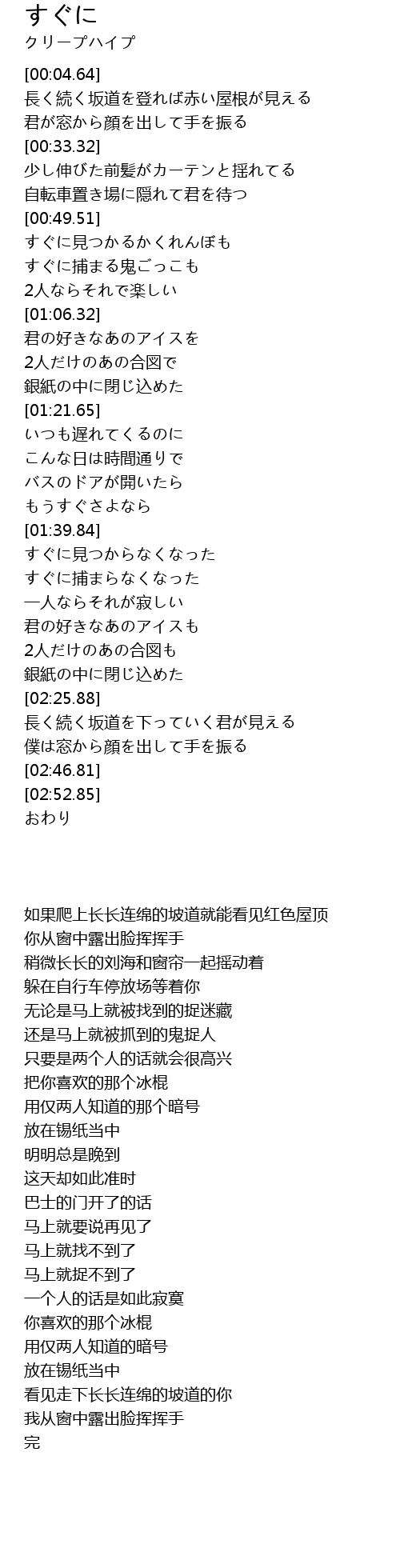 | [00:51.92] | すぐに見つかるかくれんぼも |