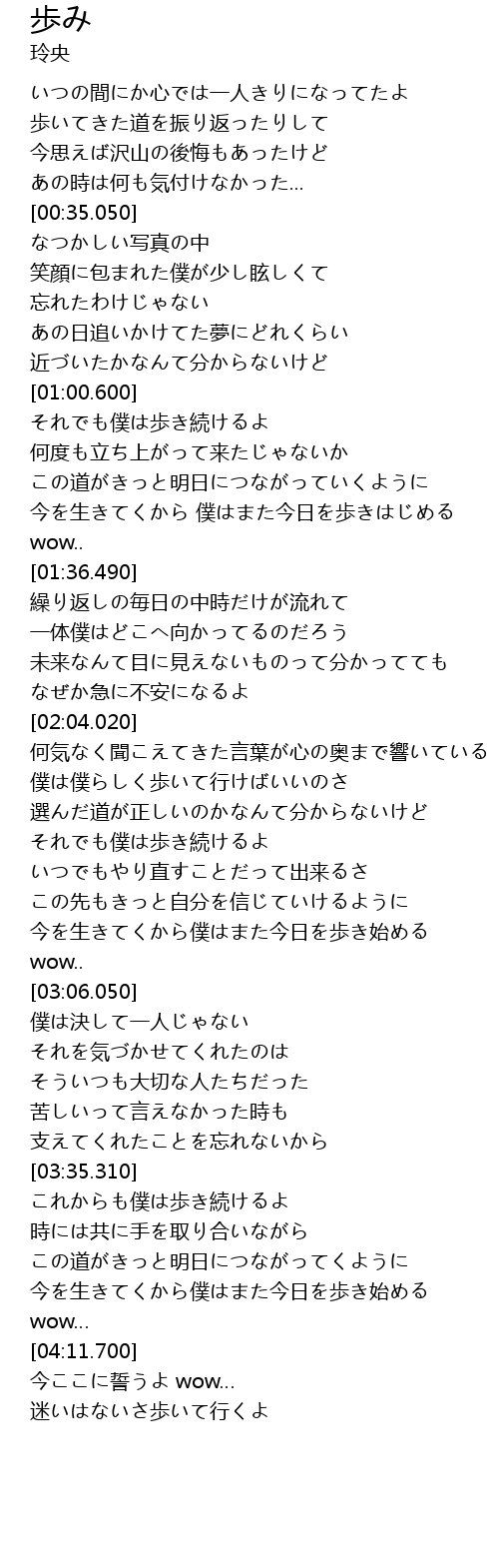 | [03:36.160] | これからも僕は歩き続けるよ |