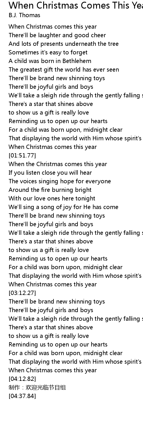 | [01:56.03] | When the Christmas comes this year |