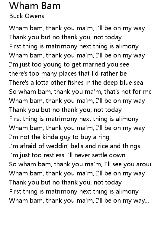 Wham bam, thank you ma'm, I'll be on my way |