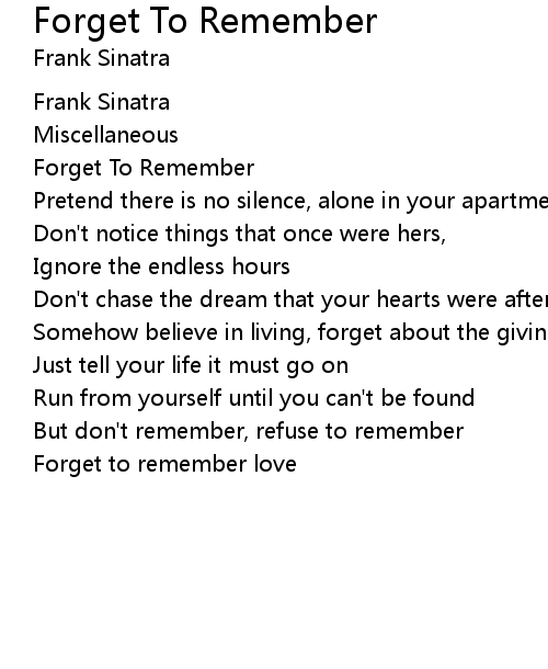 | Forget To Remember | |