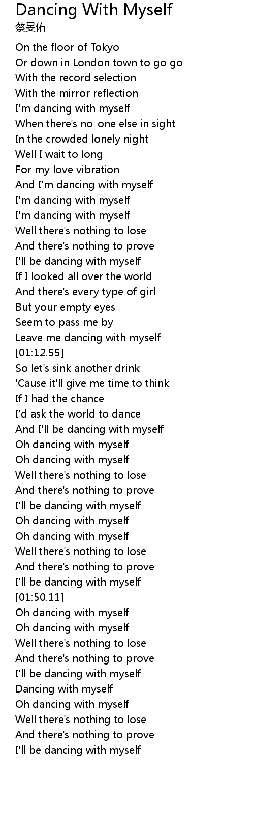 | [01:38.36] | Oh dancing with myself |