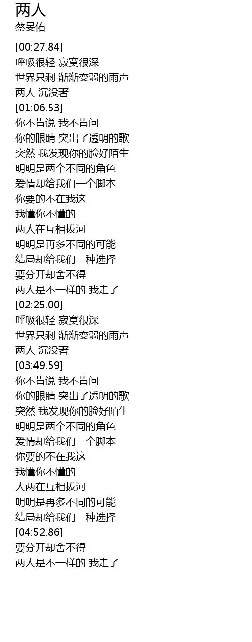 | [00:51.55] | 世界只剩 渐渐变弱的雨声 |