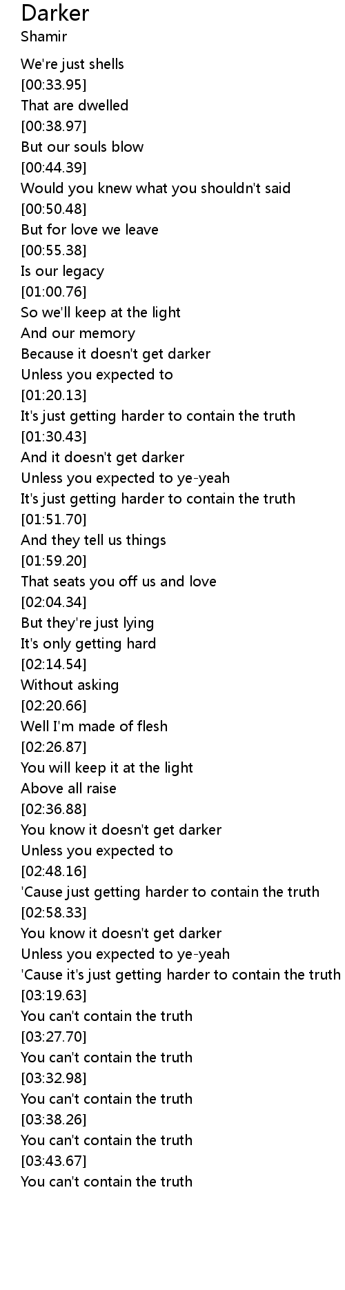| [02:50.79] | 'Cause just getting harder to contain the truth |