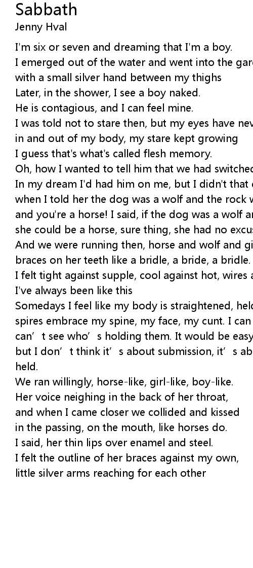 | braces on her teeth like a bridle, a bride, a bridle. | |