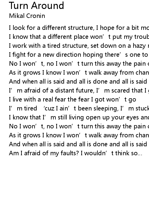 | No I won’t, no I won’t turn this away the pain of this all | |