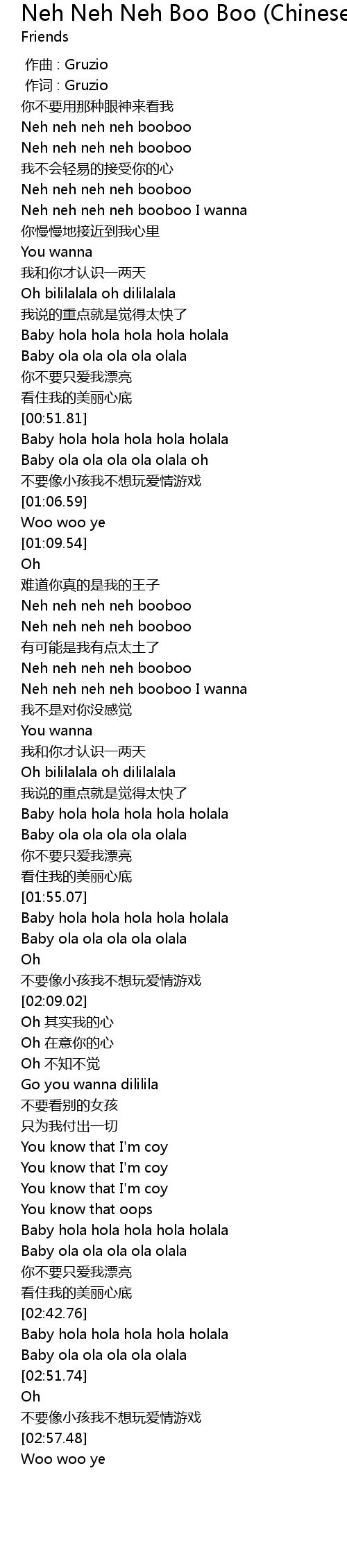 | [00:23.16] | Neh neh neh neh booboo I wanna |